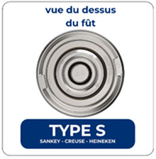 Chaque fût est équipé d’une tête de tirage spécifique, types A (plate) ou S (creuse). Ces têtes ne sont pas interchangeables. Vous devez utiliser la tête de tirage correspondant au fût. En revanche, pour servir deux bières de types différents (tête A et tête S) en même temps, optez pour la tireuse à deux becs. En cas de doute, notre équipe vous conseille sur la compatibilité des fûts et tireuses lors de la commande.